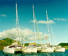 Together... We rafted our boats in Falmouth Harbor in Antigua. The