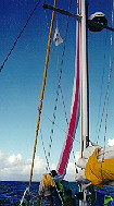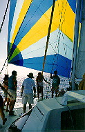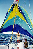 back to the cockpit. The spinnaker is hoisted while still in the boiler bag